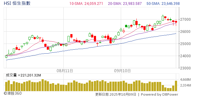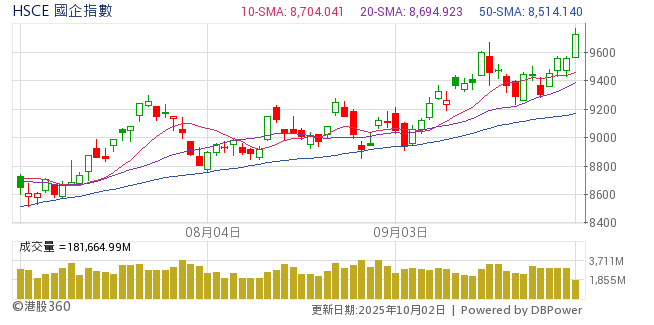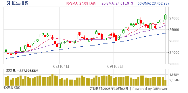 內地十一黃金周假期將至,港股及A股周一(29日)雙雙告升,港股高開後升勢持續,午後升幅曾逾500點,高見26687點,全日升494點,且重越10天綫。 騰訊控股(00700)與東風... 全文