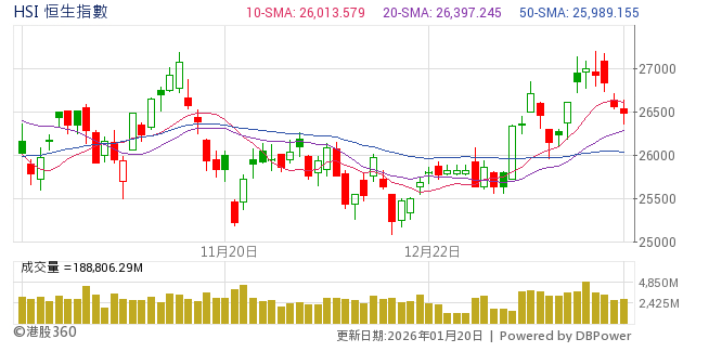 格陵蘭引發地緣危機,港股終止今年開局後的升勢,周三(7日)低開109點,低位曾見26408點,挫302點,現於26400點之上爭持,多個技術指標轉淡,支持位可參考10天綫。 廣發証... 全文