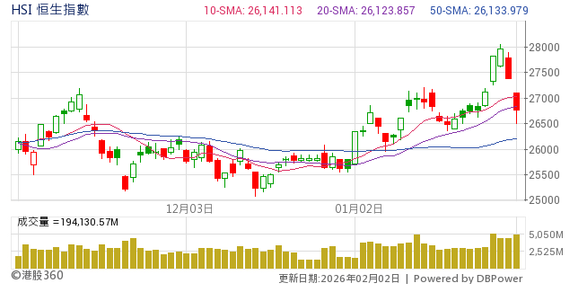美國與歐洲多國因格陵蘭歸屬問題觸發關稅戰,美股周二(20日)晚急挫870點。港股周三(21日)五連跌,低開90點,低位曾見26397點,現於26400點上爭持,支持位為20天綫。 ... 全文