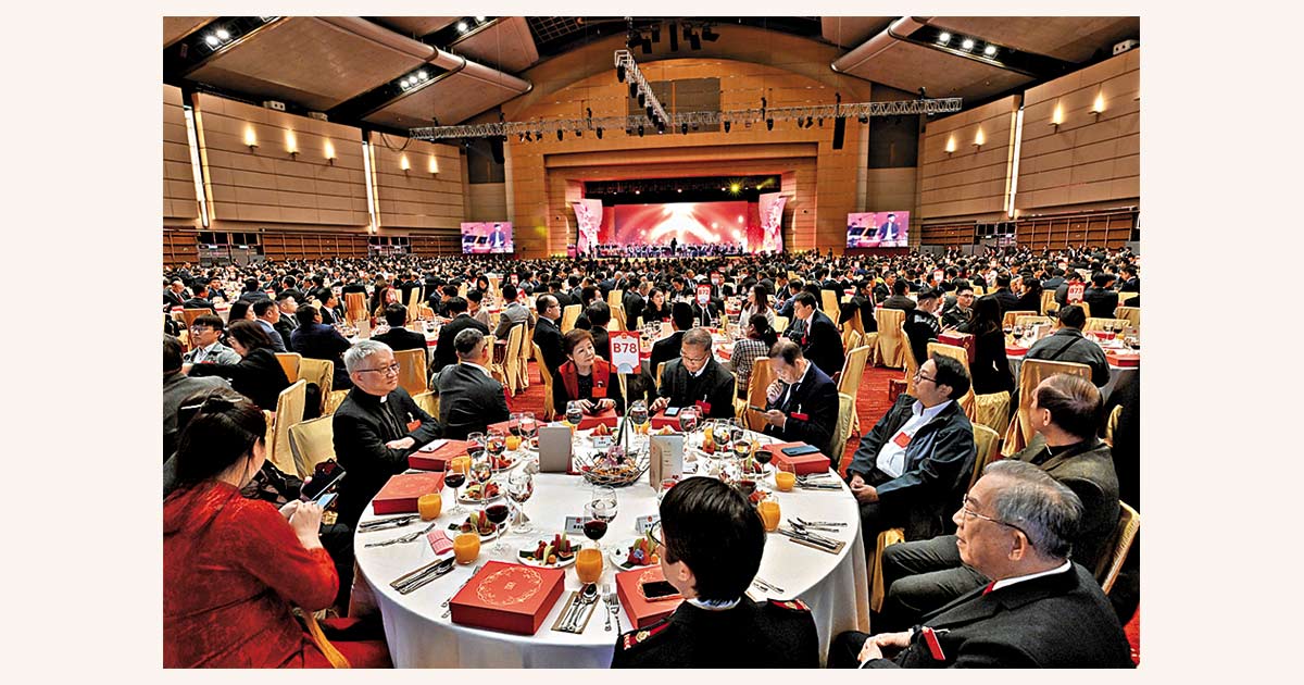 中聯辦在灣仔會展中心舉行2025年新春招待會,出席人士包括全國政協副主席梁振英、兩任前特首曾蔭權及林鄭月娥、駐港國安公署署長董經緯和外交部駐港特派員公署特派員崔建春等中央駐港機構代表、多個本港政策局首長及各界人士,共約1600人出席。